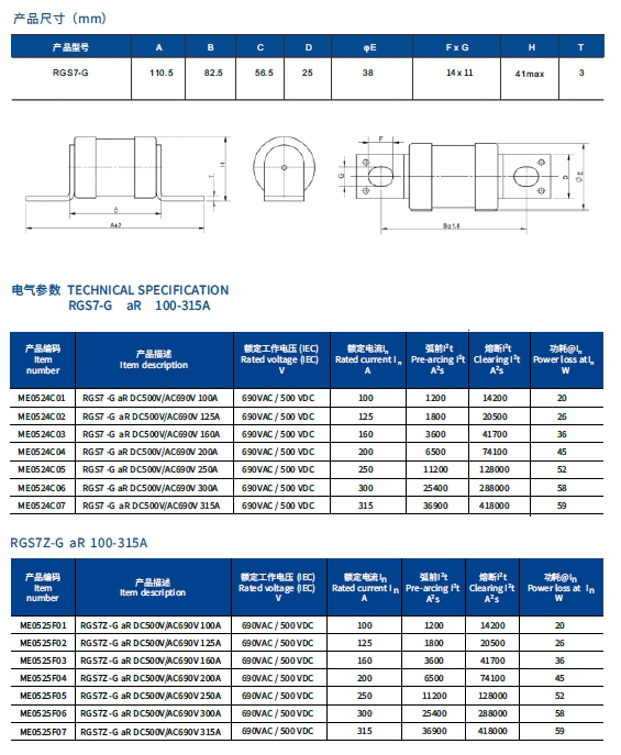 首页    半导体熔断器系列    DC500V AC690V-RGS7-G